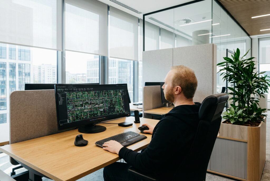 Sähkösuunnittelumme perustuu vankkaan ammattitaitoon ja alan moderneimpiin työkaluihin. Käytämme suunnittelussa tehokasta Cadmatic-ohjelmistoa, joka varmistaa suunnitelmien tarkkuuden, laadun ja tehokkuuden kaikissa kohteissa, aina pienemmistä kiinteistöistä vaativiin teollisuusprojekteihin.