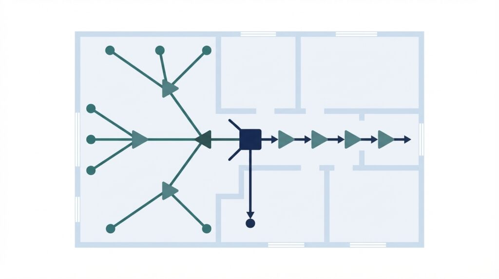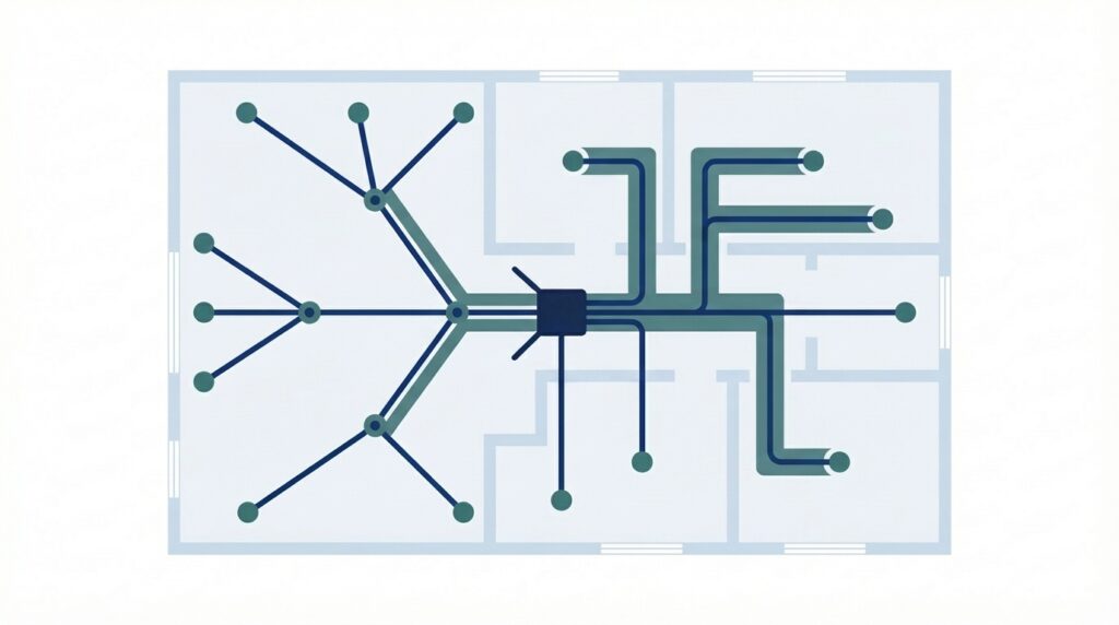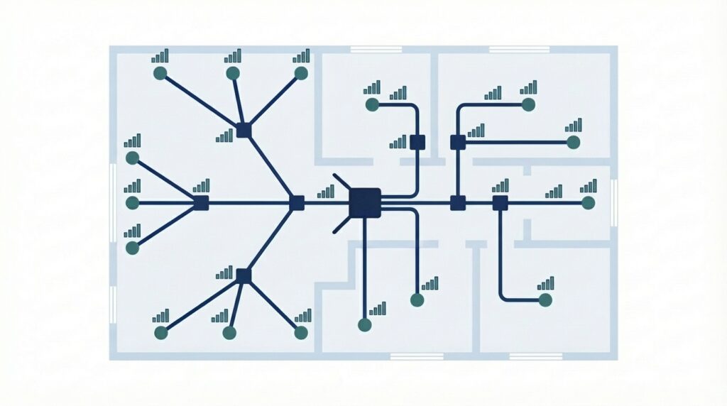 Suunnittelemme tähti- ja/tai ketjurakenteen sekä vahvistinratkaisut. Verkon rakenne vaikuttaa suoraan signaalin tasaisuuteen eri liitäntäpisteissä – oikea rakenne takaa yhtenäisen käyttäjäkokemuksen riippumatta siitä, missä osassa kiinteistöä ollaan.