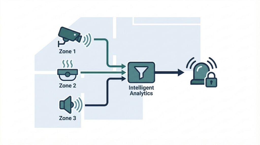 Hyödynnämme moderneja ratkaisuja kuten ilmaisimien ristiinvalvontaa ja kehittyneitä analytiikkatoimintoja. Nämä parantavat järjestelmän luotettavuutta merkittävästi ja vähentävät erheellisiä hälytyksiä – jotka ovat yksi suurimmista operatiivisista ongelmista perinteisissä järjestelmissä.