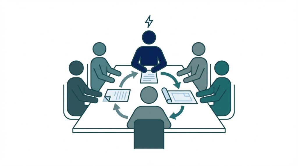 Osallistumme työmaakokouksiin ja -palavereihin sähköteknisen asiantuntijan roolissa. Asiantuntijaedustus kokouksissa varmistaa, että sähkötekniset näkökohdat huomioidaan päätöksenteossa ja tilaajan etu toteutuu kaikissa hankkeen vaiheissa.