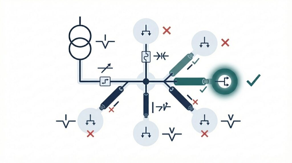 Määritämme oikosulkuvirrat verkon eri pisteissä sekä mitoitamme komponentit ja suojalaitteet niiden mukaan. Oikosulkuvirtojen tarkka laskenta on turvallisuuden kannalta kriittistä – liian pienelle oikosulkuvirralle mitoitetut laitteet voivat vaurioitua vakavasti vikatilanteessa.